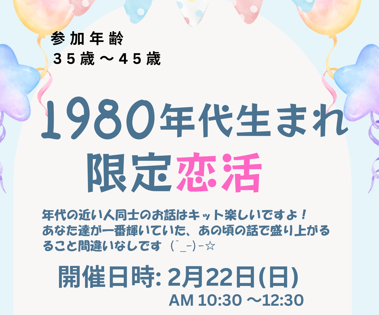 【35歳-45歳】「1980年代生まれ限定恋活」です (^_-)-⭐︎