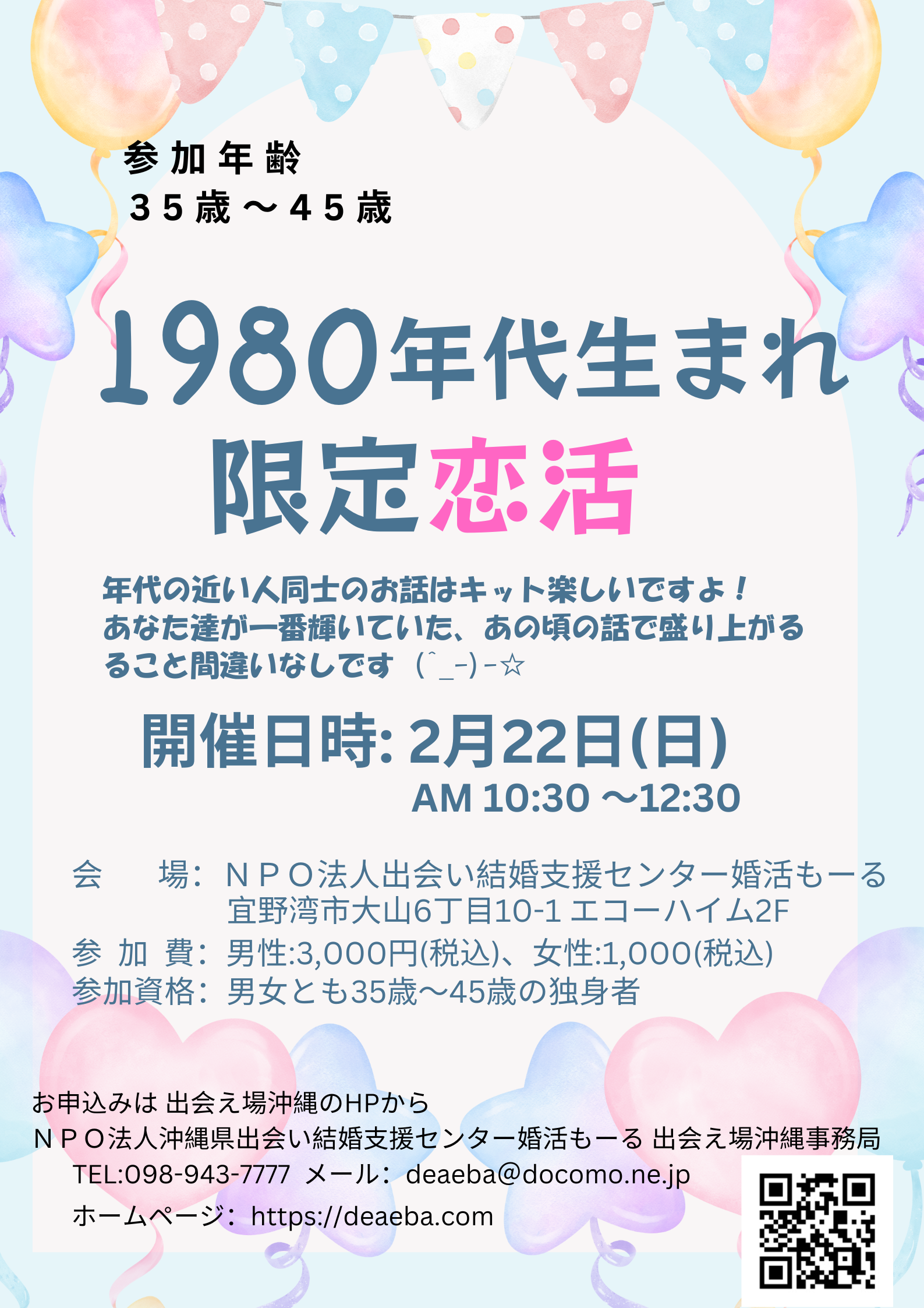 【35歳-45歳】「1980年代生まれ限定恋活」です (^_-)-⭐︎